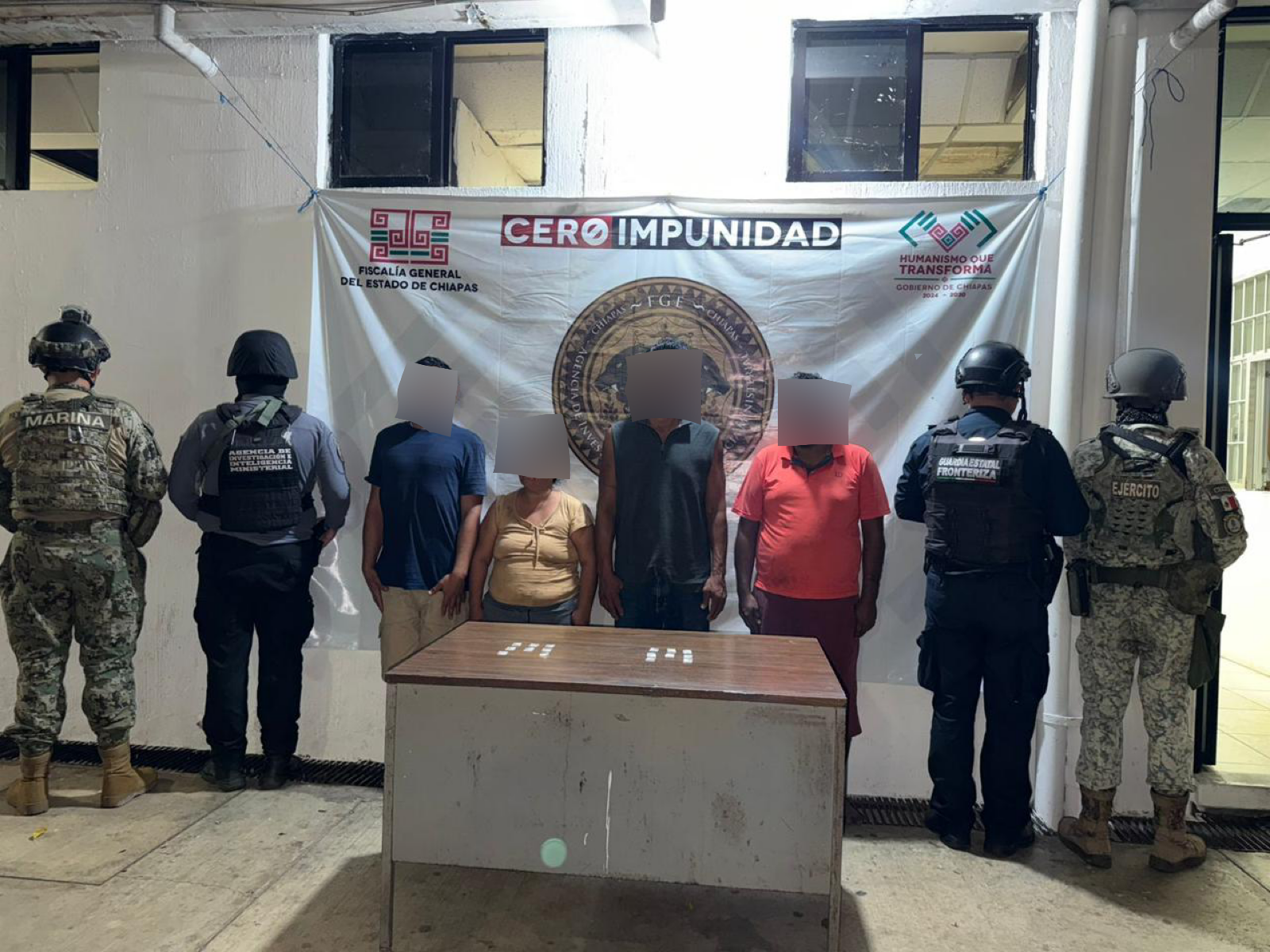 Mazatán, Chiapas (Balance México 17 de abril de 2026).- Autoridades de los tres órdenes de gobierno realizaron un operativo en el Barrio San José, del municipio de Mazatán, donde fue asegurado un inmueble y detenidas cuatro personas durante el cumplimiento de una orden técnica de investigación.