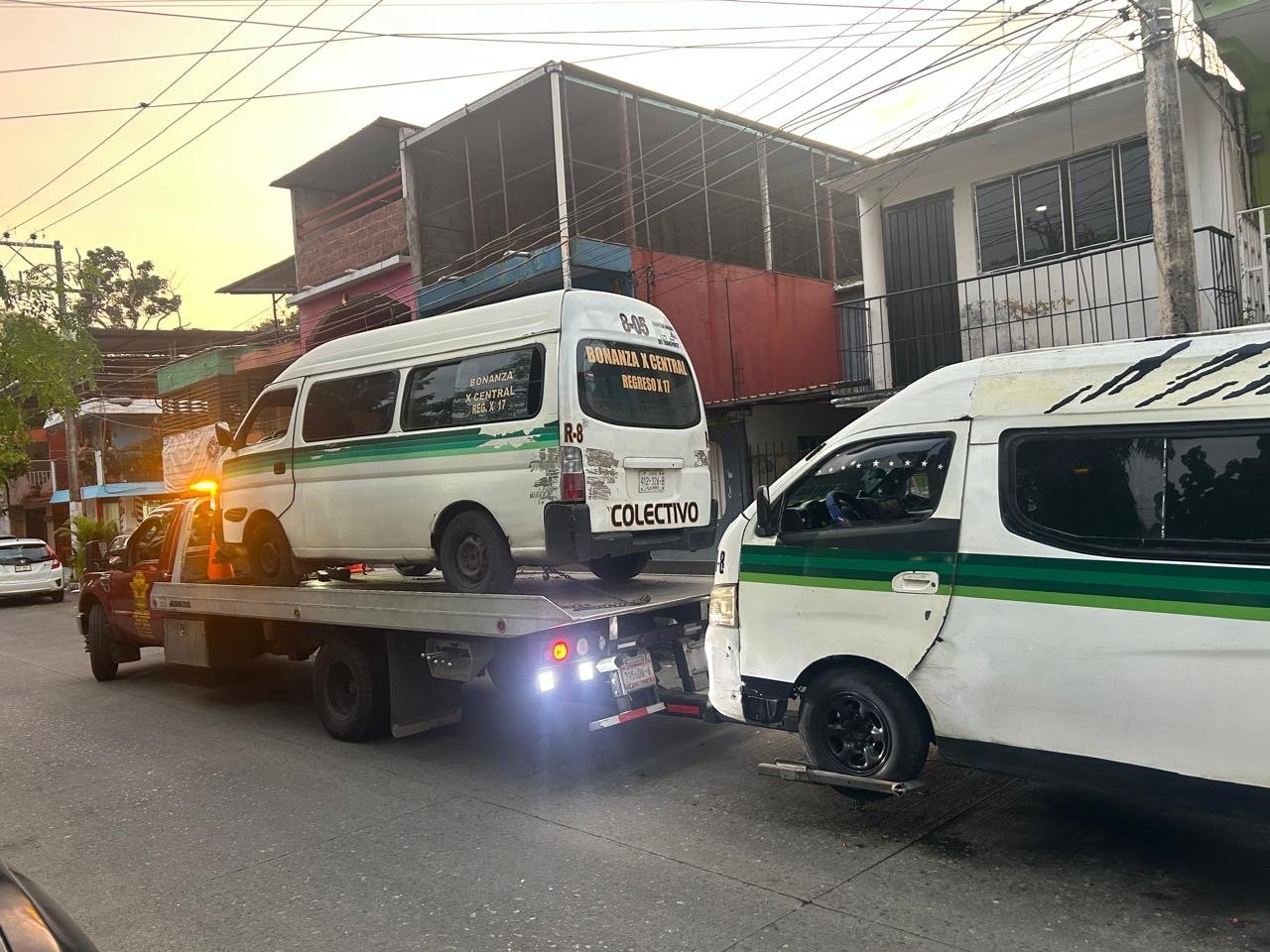 Las unidades, marcadas con los números económicos 04 y 5, fueron detenidas por personal de la SMyT, quienes verificaron que el conductor de la unidad 04, un ciudadano venezolano, no contaba con licencia de conducir, además de que la unidad no tenía placas de circulación. La unidad 5 presentaba carrocería muy deteriorada y otros problemas mecánicos.
