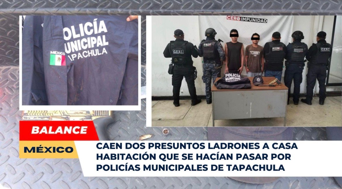 Tapachula, Chiapas (Balance México 04 Noviembre 2025).– Derivado de trabajos de inteligencia y vigilancia estratégica, la Secretaría de Seguridad Pública y Protección Ciudadana Municipal logró la detención de dos presuntos integrantes de una banda familiar dedicada al robo a casa habitación y comercios en distintos puntos de la ciudad.
