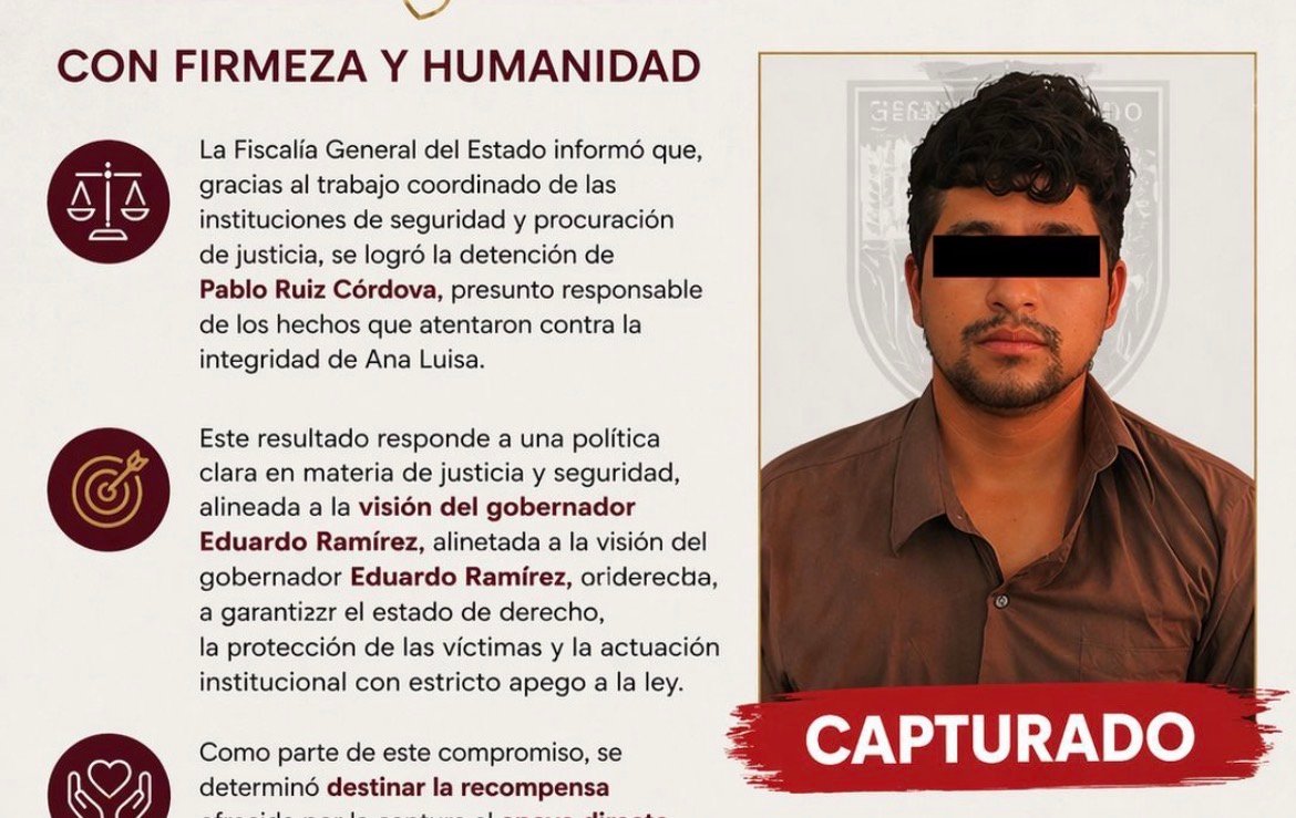 Al respecto, el Fiscal General dio a conocer que ninguna persona se hizo acreedora de la recompensa debido a que fue una labor de inteligencia; no obstante, bajo la política humanista de este gobierno, acordó junto con el gobernador Eduardo Ramírez que el recurso de los 500 mil pesos será donado a Ana Luisa “N”, para que sean utilizados para sus gastos médicos y familiares.