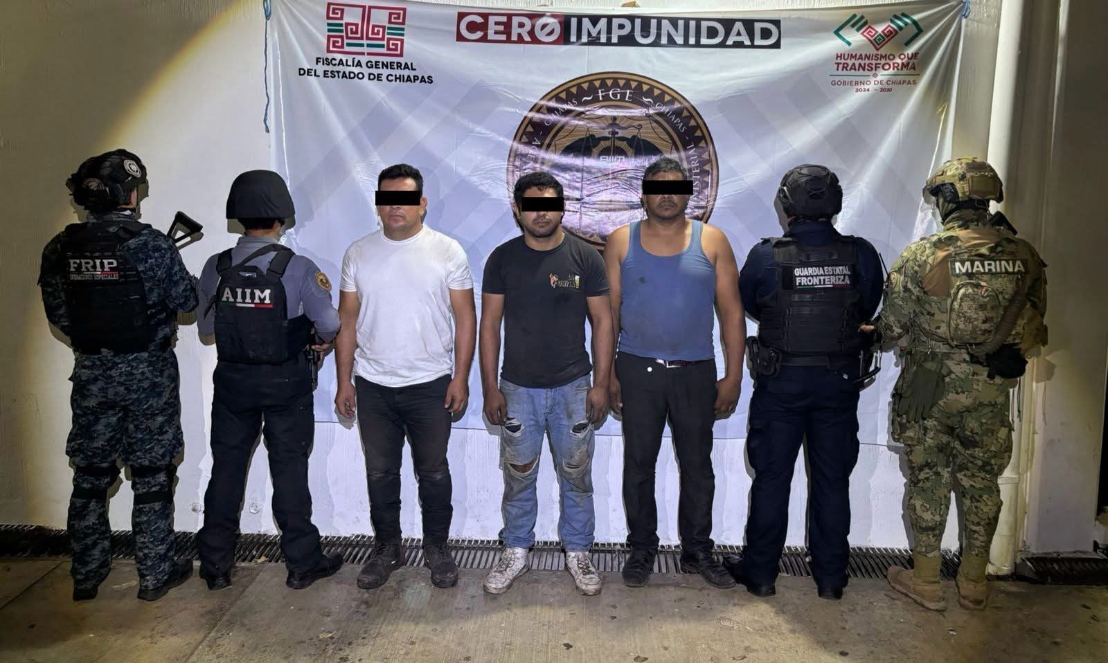 El operativo fue realizado por el Grupo Interinstitucional, conformado por la Fiscalía General del Estado, la Secretaría de la Defensa Nacional, la Guardia Nacional y la Secretaría de Seguridad del Pueblo. En el lugar fueron detenidos Ahmed “N”, Nahum “N” y Ricardo “N”.