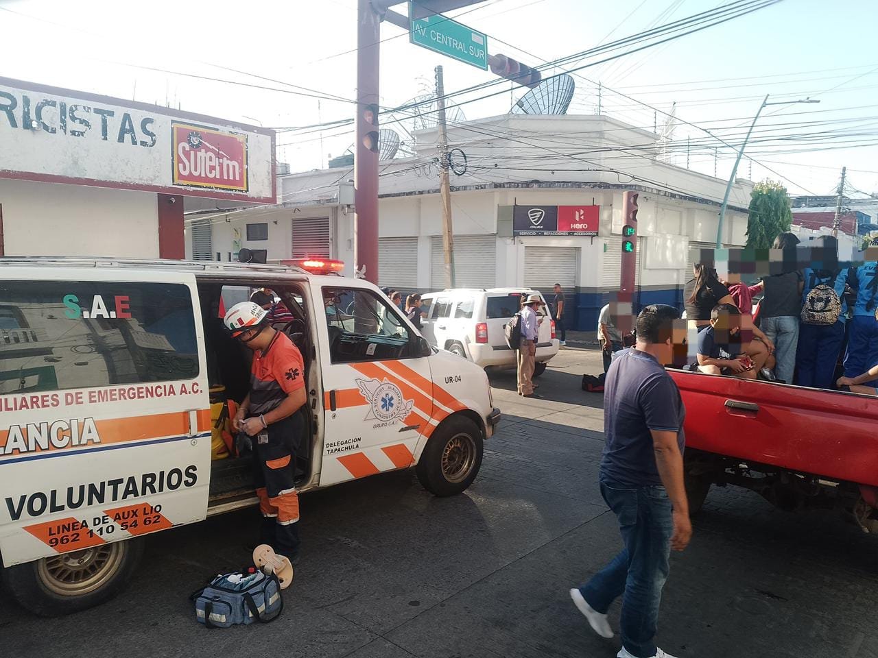 Tapachula, Chiapas (Balance México 22 de enero de 2026).-Un accidente vehicular se registró la mañana de este miércoles en el cruce de la central sur y 4ª calle oriente, del municipio de Tapachula, donde se vieron involucrados una motocicleta y una camioneta.