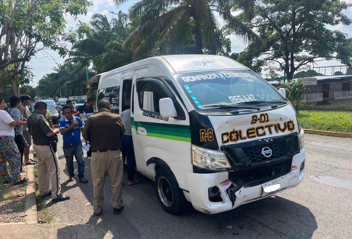 Testigos informaron que Luis “N” circulaba en un automóvil rojo de oriente a poniente cuando fue impactado en la parte trasera por una combi del transporte público que cubre la ruta Bonanza–Central, lo que provocó el accidente.