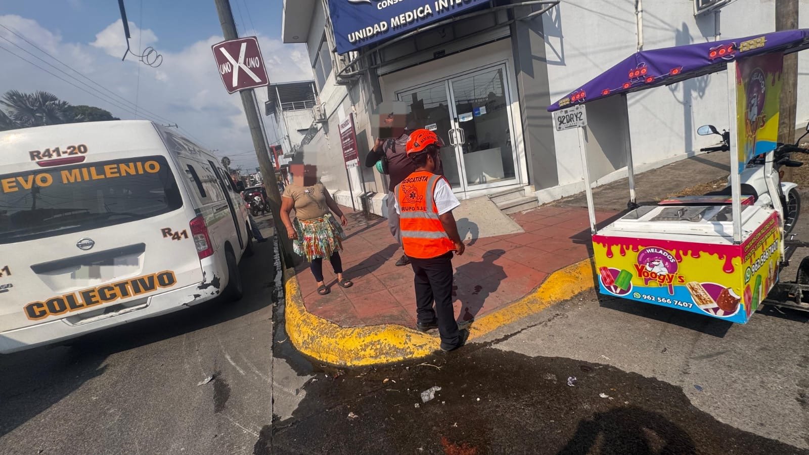 El reporte fue atendido a las 15:25 horas por elementos del Grupo SAE, quienes acudieron a bordo de la unidad UR-04 con cuatro paramédicos. Al arribar, localizaron a un hombre de aproximadamente 38 años de edad, identificado como desconocido, quien se encontraba de pie.