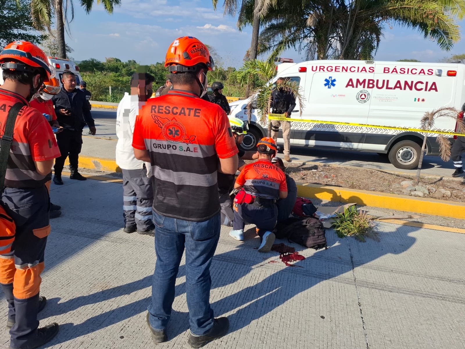 Al sitio acudió de manera inmediata la unidad UR-01 con cuatro elementos a bordo. Al arribar, los paramédicos localizaron a Ángel N, de aproximadamente 24 años de edad, sentado sobre el pavimento, desorientado, con una herida de alrededor de tres centímetros en la región parietal del cráneo, múltiples abrasiones en extremidades y probable fractura de muñeca. Se le realizaron curaciones, control de hemorragia e inmovilización.