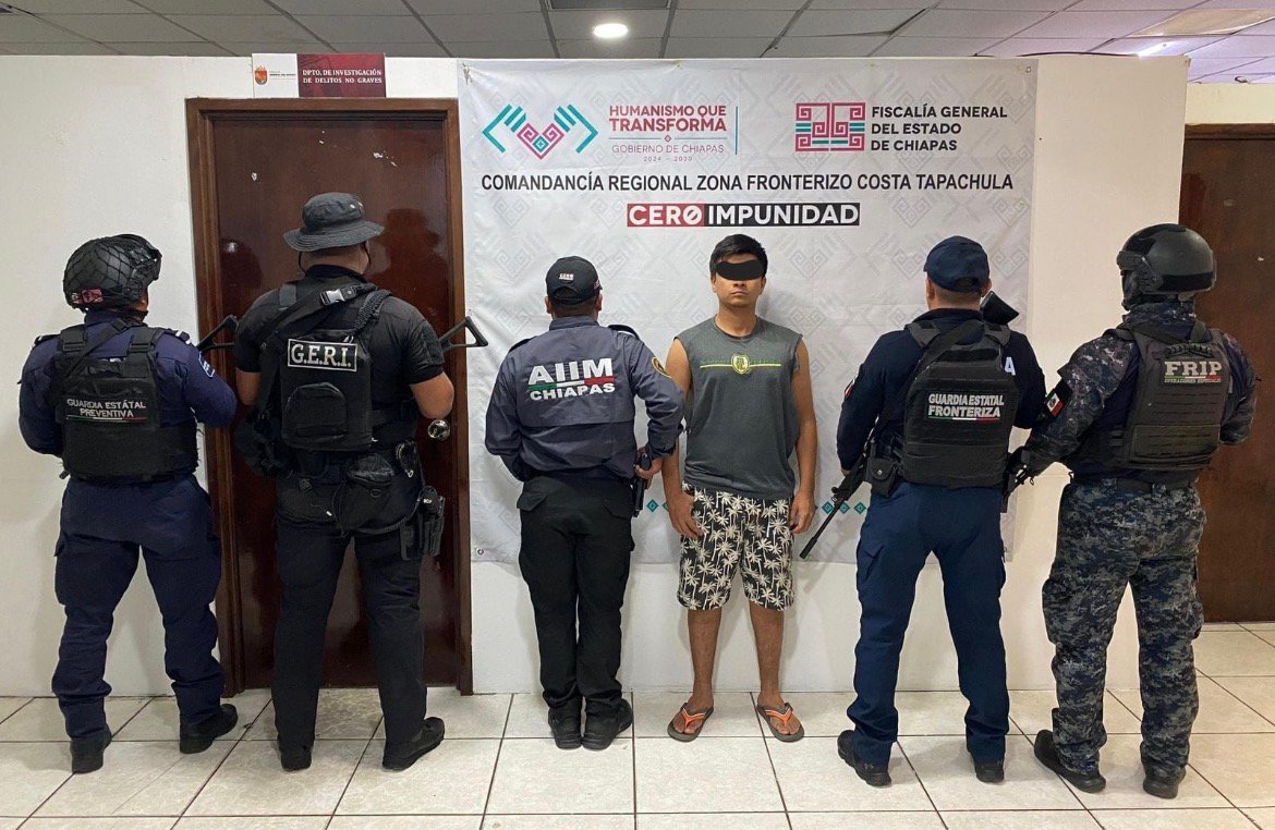 Tapachula, Chiapas (Balance México 03 Diciembre 2025).— Elementos de la Agencia de Investigación e Inteligencia Ministerial detuvieron a un hombre que presuntamente se negó a acatar instrucciones oficiales y mostró resistencia durante una intervención policial realizada sobre la carretera a Raymundo Enríquez, a la altura de la colonia Unión y Fuerza del municipio de Tapachula.