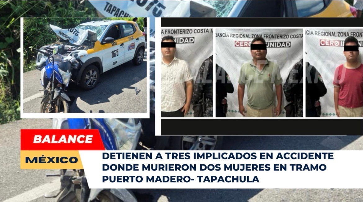 De acuerdo con las investigaciones, los hechos ocurrieron el pasado 5 de octubre sobre el tramo Puerto Madero–Tapachula, a la altura del cantón Leoncillos, donde Edith “N” y Brenda “N”perdieron la vida y un menor de edad resultó lesionado, tras ser arrollados por un taxi con número económico 1675, conducido por Carlos “N”.