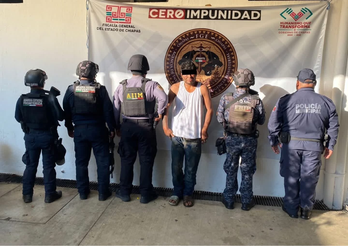 De acuerdo con información oficial, la detención fue realizada por elementos de la Secretaría de Seguridad del Pueblo, a través de la Fuerza de Reacción Inmediata Pakal, la Guardia Estatal Preventiva y la Guardia Estatal Fronteriza, en coordinación con la Agencia de Investigación e Inteligencia Ministerial de la Fiscalía General del Estado.