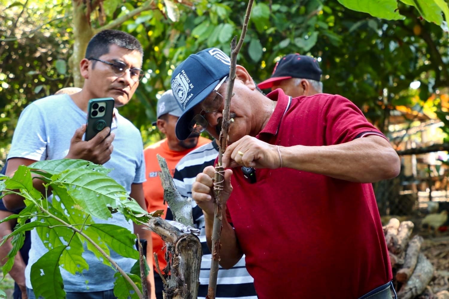 El titular de la secretaría, Daniel López Santiago señaló que en coordinación con la Facultad de Sistemas Alimentarios de la UNACH, se impartieron talleres a 23 productores del ejido La Lima, con el objetivo de fortalecer sus habilidades en el manejo integral de plantaciones, lo que incluyó injertación y mejoramiento genético, Podas de formación, Manejo de enfermedades y Procesos de fermentado y comercialización.