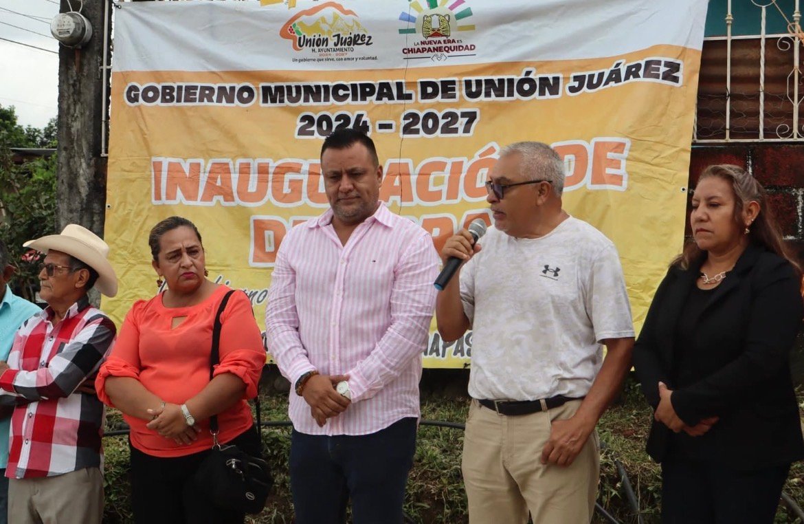 Unión Juárez, Chis. (Balance México 06 Octubre 2025).-Con el firme compromiso de mejorar la infraestructura urbana y elevar la calidad de vida de las familias, el Ayuntamiento de Unión Juárez llevó a cabo la inauguración de la obra “Construcción de la Avenida Adolfo López Mateos, entre calles Lázaro Cárdenas y 20 de Noviembre, con concreto hidráulico y empedrado mixto” en el ejido Santo Domingo.