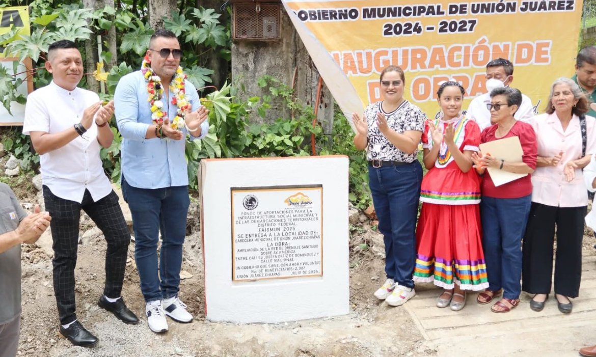 Unión Juárez, Chis. (Balance México 19 Agosto 2025).-El presidente municipal de Unión Juárez, Fabián Barrios de León, encabezó la inauguración de la obra “Ampliación de la red de drenaje sanitario sobre Av. América, entre las calles Josefa Ortiz de Domínguez y Calle Nacional”, una acción que atiende una de las principales demandas de la población.