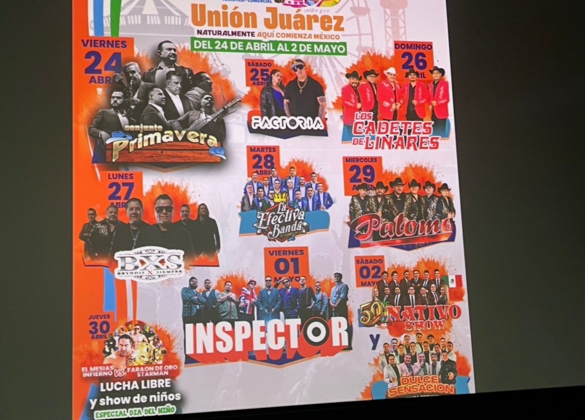 La feria se desarrollará del 24 de abril al 2 de mayo y arrancará el viernes 24 con la presentación de Conjunto Primavera; el sábado 25 continuará con La Factoría; el domingo 26 será el turno de Los Cadetes de Linares; el lunes 27 se presentará BXS Brindis por Siempre; el martes 28 estará La Efectiva Banda; el miércoles 29 subirá al escenario Grupo Palomo; el 30 de abril habrá función especial de lucha libre con figuras como El Mesías y Faraón de Oro; el viernes 1 de mayo se presentará Inspector; y el sábado 2 de mayo cerrarán Nativo Show y Dulce Sensación.