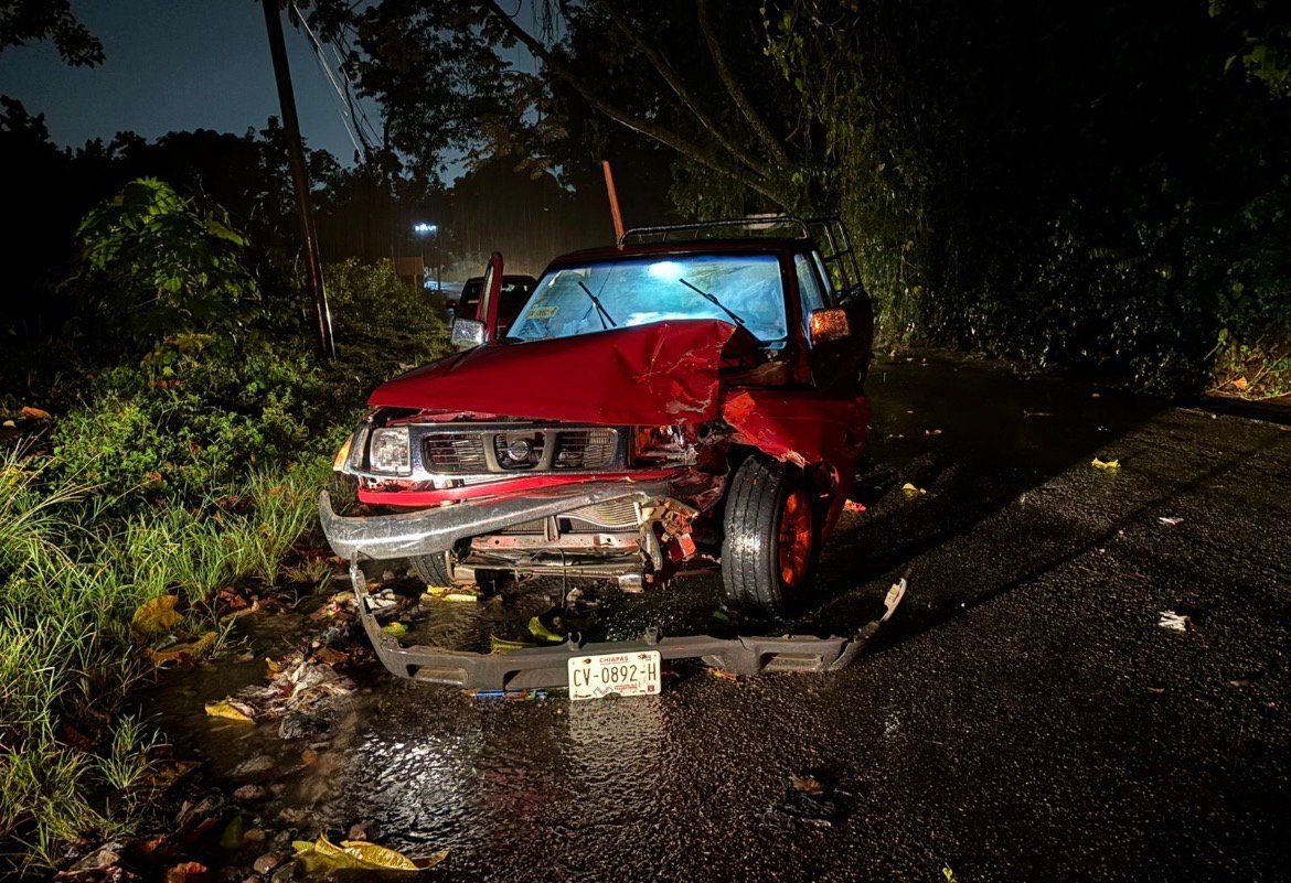 Tapachula, Chiapas (Balance México 19 Octubre 2025). — La noche de este domingo se registró un accidente vehicular sobre la carretera que conecta a Tapachula con el Ejido 20 de Noviembre, a unos 400 metros de la colonia El Vergel, en el tramo que conduce hacia San Francisco.
