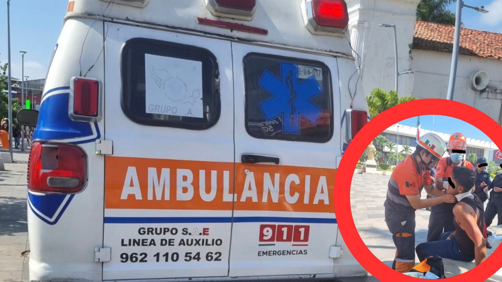 El hecho ocurrió sobre la 8ª Norte y 5ª Poniente, frente al Palacio Municipal, donde paramédicos de la unidad UR-01 de Grupo SAE acudieron para brindar atención a un hombre identificado como Cristofer “N”, de 24 años de edad.