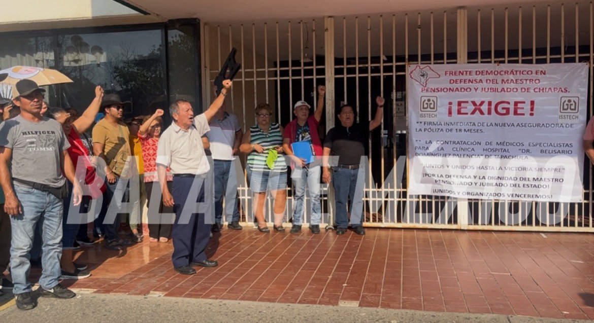 Tapachula, Chiapas (Balance México 17 Marzo 2026). Un grupo de aproximadamente 100 jubilados y derechohabientes encabezados por Luis Manuel Estudillo Franco, presidente del Frente Democrático en Defensa de Maestros, Pensionados y Jubilados de Chiapas, tomaron la Unidad Administrativa desde las seis de la mañana de este martes, en protesta por la falta de respuesta del Instituto de Seguridad Social de los Trabajadores del Estado de Chiapas (ISSTECH).