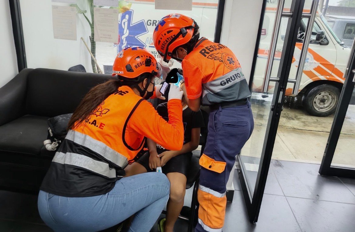 Al lugar acudió la unidad UR-01 de Grupo SAE con dos elementos a bordo, quienes brindaron atención al menor, que presentaba una lesión contusa de aproximadamente un centímetro en la parte frontal del cráneo.