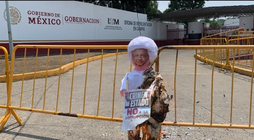 Como parte de la protesta se quemaron dos piñatas los cuales estaban diseñados con uniforme del INM y el rostro de Francisco Garduño titular del Instituto Nacional de Migración como del presidente Andrés Manuel López Obrador, en la manifestación gritaban consignas como “no fue el fuego, fue el estado”.