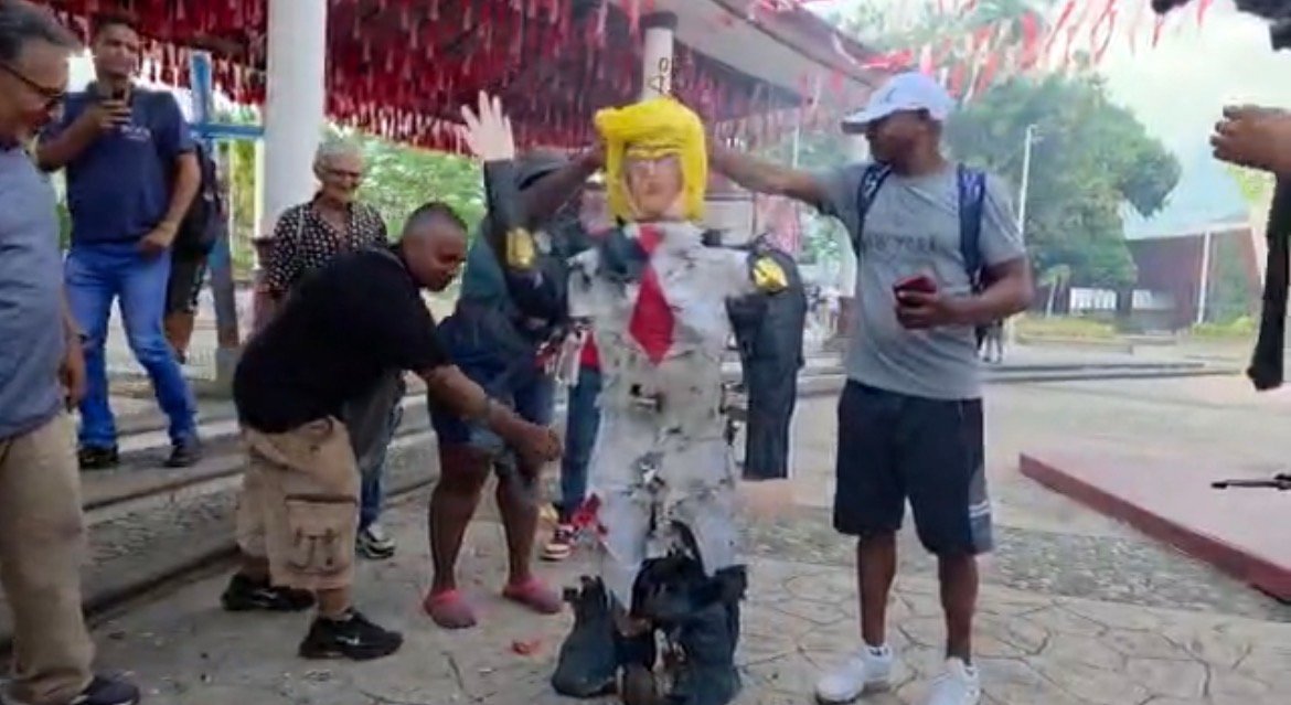 Al finalizar la jornada, los asistentes quemaron una piñata con la figura del exmandatario estadounidense, como forma de protesta simbólica.