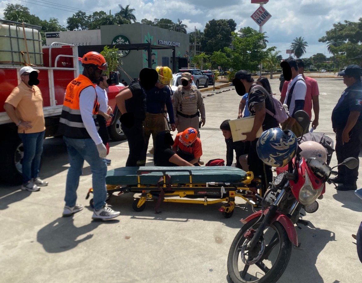 De acuerdo con los reportes, el percance ocurrió cuando el conductor del automóvil realizaba maniobras en reversa para retirarse del lugar y no se percató de la presencia de una pareja de motociclistas que circulaba por la zona, lo que provocó el impacto y la caída de la fémina.