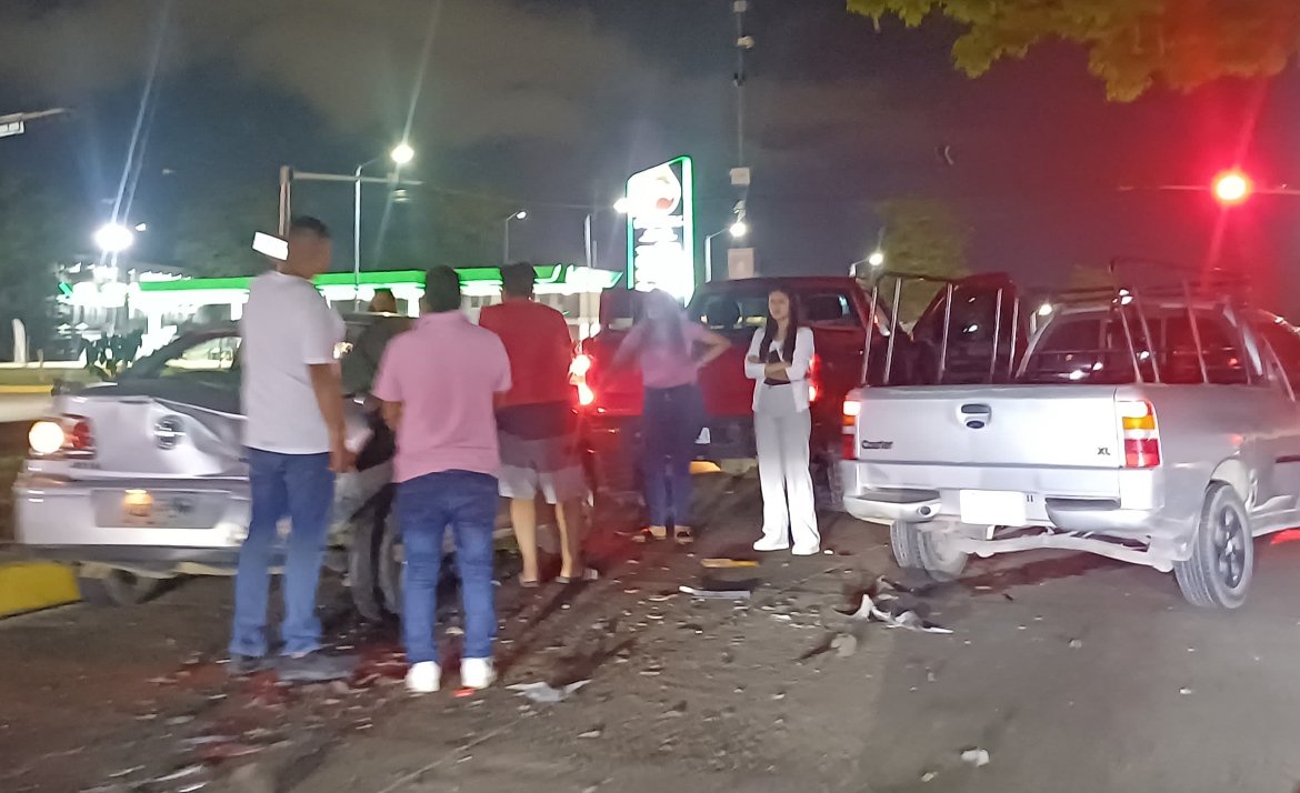 El percance ocurrió alrededor de las 21:50 horas, cuando una camioneta tipo Pick Up, presuntamente circulando a exceso de velocidad, impactó contra un vehículo Jetta color gris que transitaba en la misma dirección. Según testigos, el accidente se habría originado porque uno de los conductores no pudo frenar a tiempo.