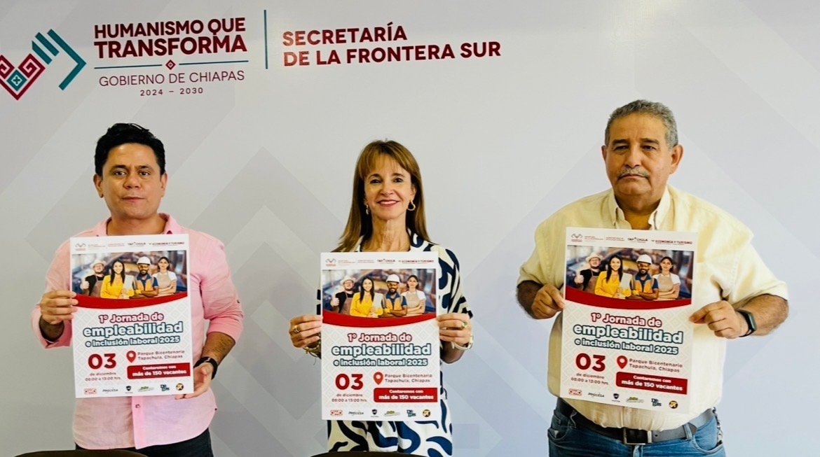 Tapachula, Chiapas (Balance México, 28 de noviembre de 2025).– Autoridades estatales y municipales anunciaron la 1ª Jornada de Empleabilidad e Inclusión Laboral 2025, que se realizará el Miércoles 03 de diciembre, de 08:00 a 13:00 horas, en el Parque Bicentenario de Tapachula. En esta jornada se ofertarán más de 150 vacantes formales para la población local, migrantes con estancia regular y personas repatriadas.