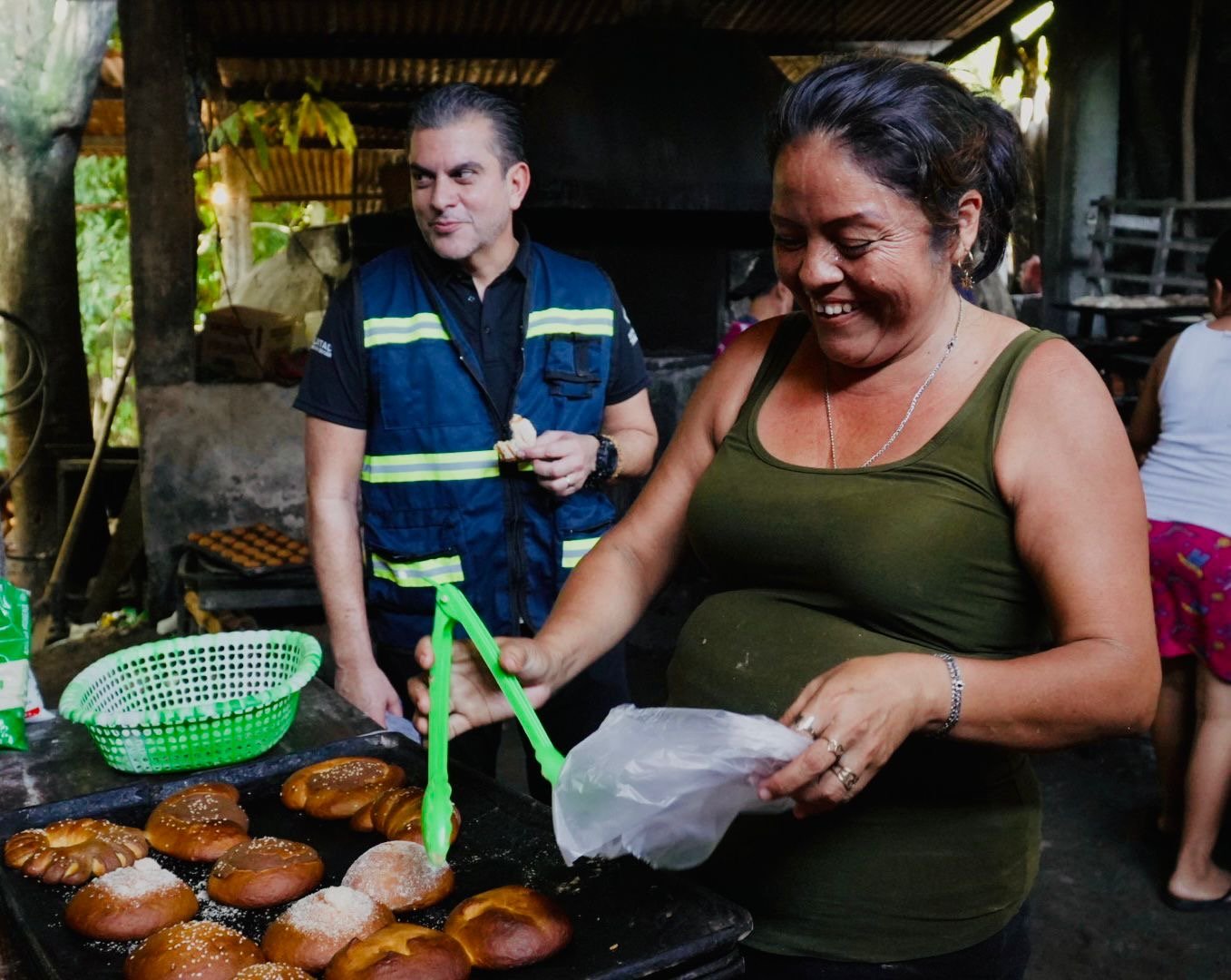En su visita, el edil fue invitado a la panadería familiar que es propiedad de Gumersindo Ramos y Zayra Velázquez, personas trabajadoras que desde hace más de diez años venden un delicioso pan en el mercado San Juan, en el lugar conoció el proceso de elaboración de dicho producto alimenticio, reiterando el compromiso del Gobierno Municipal de respaldar a las familias emprendedoras que con esfuerzo y dedicación contribuyen al desarrollo de nuestro municipio.