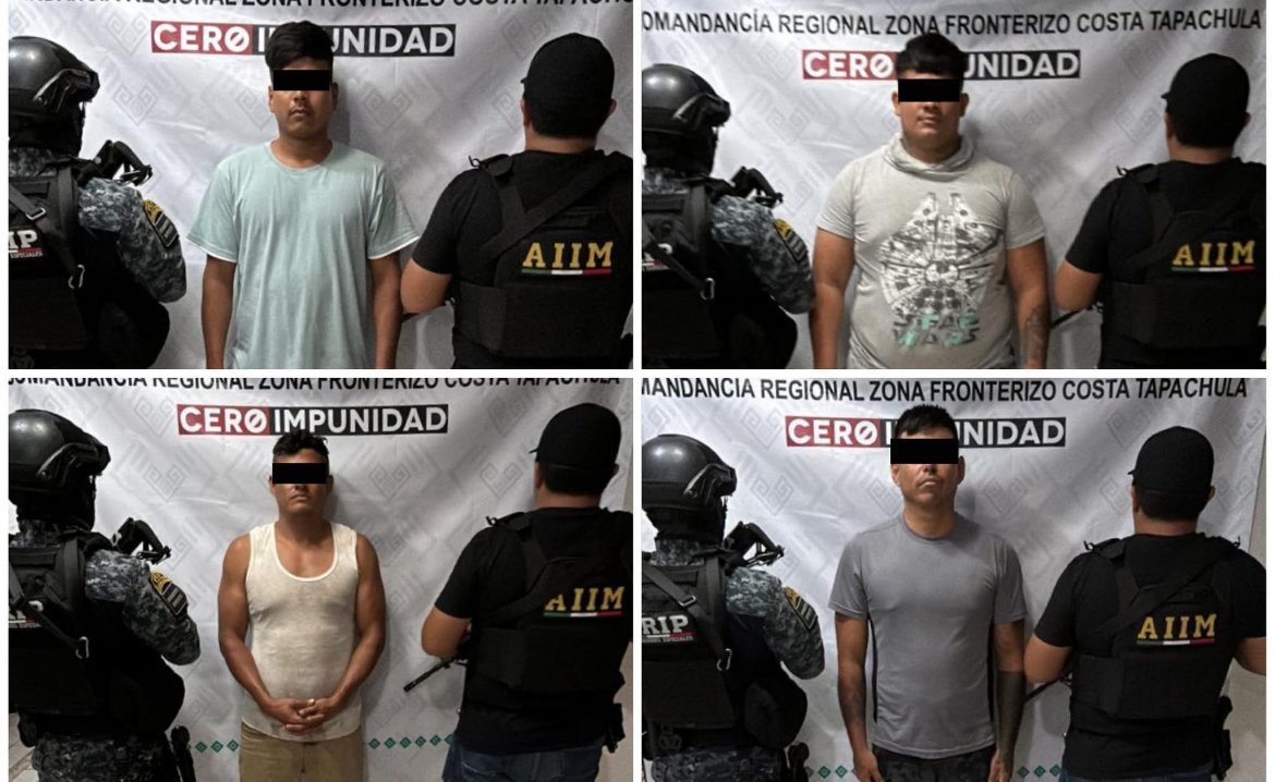 Mazatán, Chis. (Balance México 17 Agosto 2025).- La Fiscalía General del Estado y la Secretaría de Seguridad del Pueblo ejecutaron órdenes de aprehensión en contra de Erick “N”, Abraham “N”, Gustavo “N” y Angel “N”, como presuntos responsables del delito de violación agravada, cometido en agravio de un menor de edad de identidad reservada, por hechos ocurridos en el Centro de Rehabilitación para el Enfermo Alcohólico y Drogadicto Mazatán, ubicado en el barrio Guadalupe del municipio de Mazatán, el 13 de agosto del presente año.