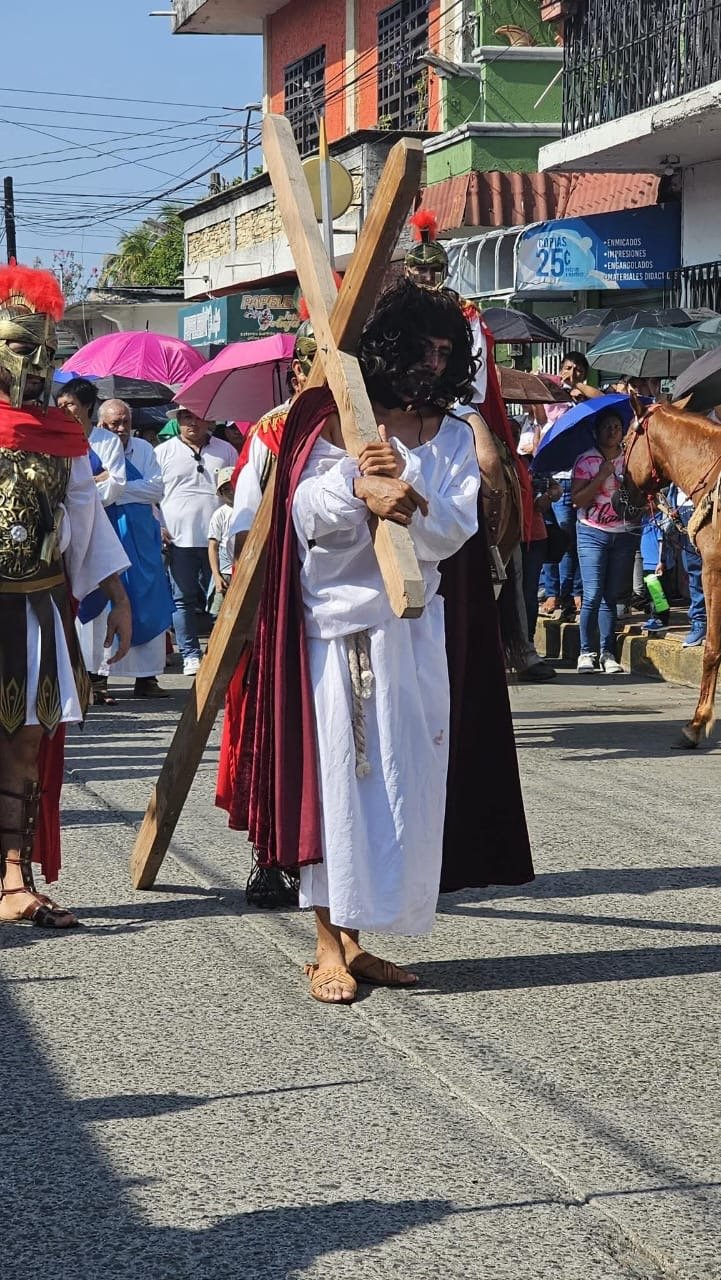 El viacrucis representa los momentos finales de la vida de Jesucristo, desde su condena hasta su crucifixión y sepultura, por lo que la población salió de sus hogares para observar la escenificación de la Pasión de Cristo. “Cada estación nos recuerda que su entrega fue por amor a la humanidad y nos invita a caminar con fe”, señaló la parroquia.